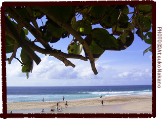 散歩の途中でエフカイビーチの木陰でひと休み。